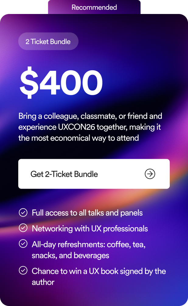At UXCON26, you’ll meet the ux professionals that are leading the charge, product managers who question assumptions, the engineers who turn sketches into systems. Together, we’ll design — not in silos, but side by side.
